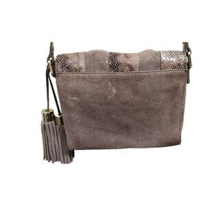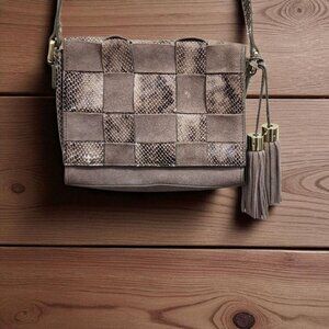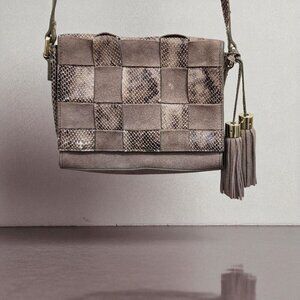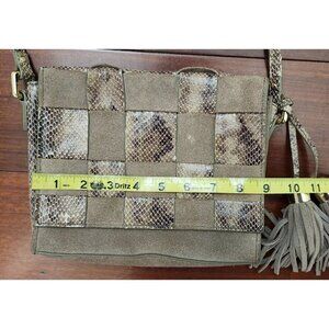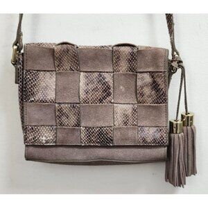 Antropologie Morgan Woven Suede Crossbody Bag Snakeskin Accents Tassel Boho
