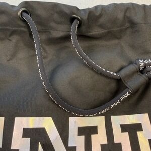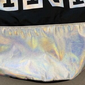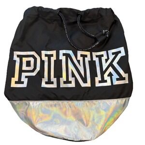 Victoria's Secret PINK ~ Excellent Metallic Drawstring Backpack Black/Silver EUC