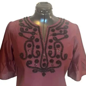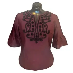 Women's Talbots RSVP Embellished Silk Blend Blouse Top, Burgundy, L