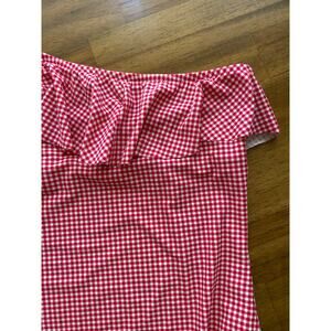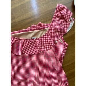 J Crew Ruffle One Shoulder Red White Gingham Full Coverage One Piece EUC Large