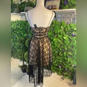 Steve Madden Black Lace Hi-Low Midi Dress with Nude Lining XS NWT Retail $129