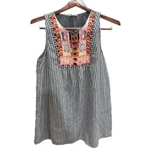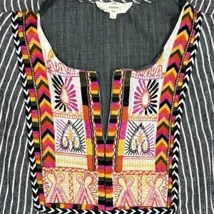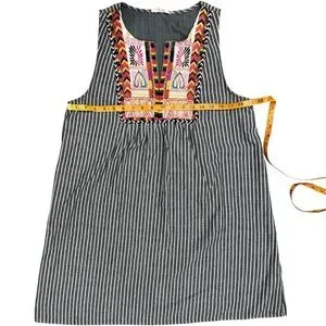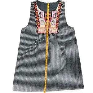 Entro Boho Striped Mini Dress with Colorful Embroidery - Size L