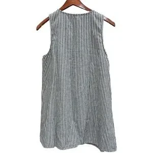 Effortlessly cute Entro boutique mini dress featuring classic black and white vertical stripes and a vibrant floral embroidered bib. This versatile piece can be worn as a breezy summer mini dress or styled as a long tunic over leggings or denim. Perfect for vacation, beach days, or brunch.
