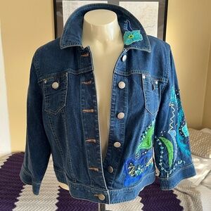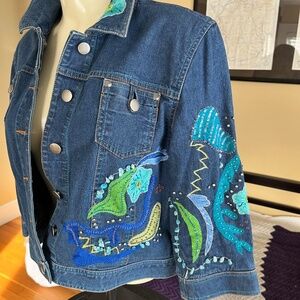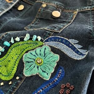 Double D Ranch Women's Sz. S Blue Jean Denim Jacket Embroidered Bedazzled.