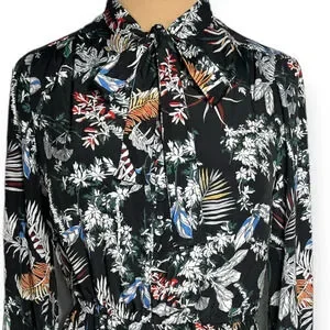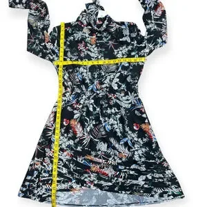 This seasonal floral dress with bow tie neck and bell sleeves plays to the trends.