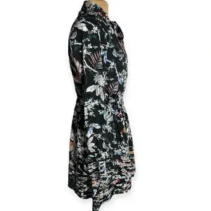 DEREK LAM size 6 Bell-Sleeve Black Multicolor Floral Silk Dress
