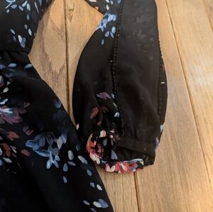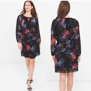 Women's White House Black Market Black Long Sleeve Floral Print Dress Size 10