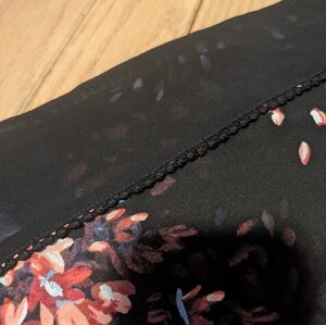 Elegant black dress with vibrant floral patterns. Perfect for any occasion.