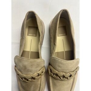 New Dolce Vita Tan Suede Braided Chain Loafers Almond Toe Slip On Shoes 7.5