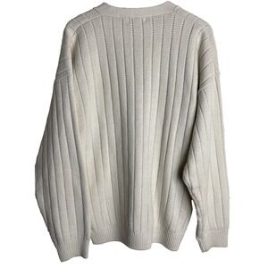 Vintage 90s men's Towncraft cable knit cardigan sweater in size XL in ivory with pockets. Sweater is in excellent pre-owned condition.