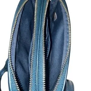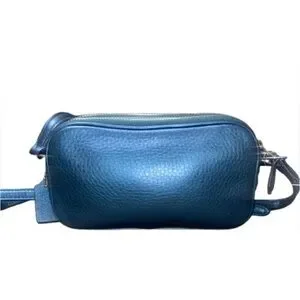 Coach elegant teal leather crossbody bag. Features silver hardware. Compact and stylish design. nwt