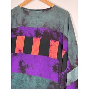 Beth Nash Silk Blouse XS Green Purple Tie Dye Patchwork Artsy Oversized Top