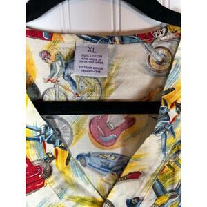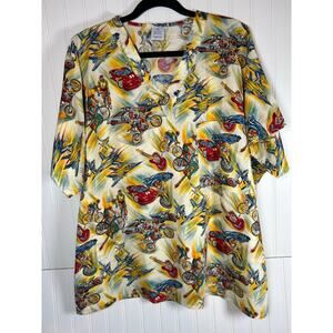 Men scrub top 100% cotton made in USA size XL racing car print Nurse