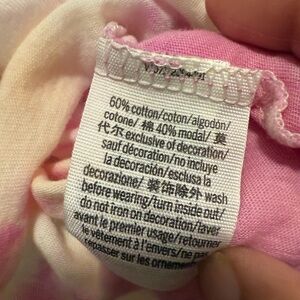 This stylish cropped from PINK Victoria's Secret features a unique asymmetrical design with long sleeves. The soft white and pink tie-dye pattern adds a dreamy touch, making it perfect for casual outings. Its lightweight fabric ensures comfort and ease of wear.