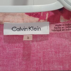 Calvin Klein Womans Long Sleeve, Linen Floral Button Down Shirt, Size Large