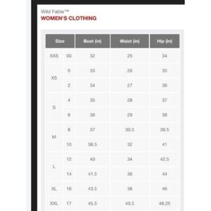 See size chart attached for brand measurements