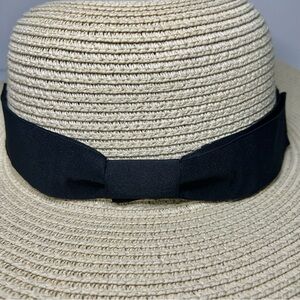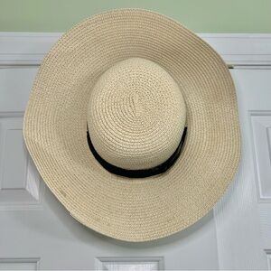 Debra Weitzner Cream Wide Brim Black Ribbon Band Beach Sun Hat