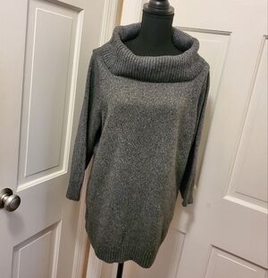 Charter Club Oversized CowlNeck Charcoal Gray with Silver Metallic Siz 2X