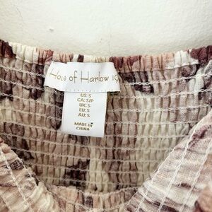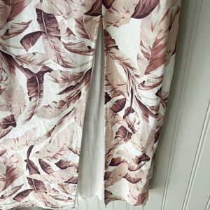 House of Harlow 1960 Small Linen Blend Mauve Palm Leaf Cream Midi Dress