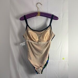 NWOT VTG 90s Speedo Black+ Neon Floral Low Back Retro One Piece Women’s L