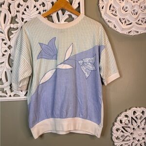 Vintage Collections Plus Floral Cotton Top Blue Green White 38/18W FLAW