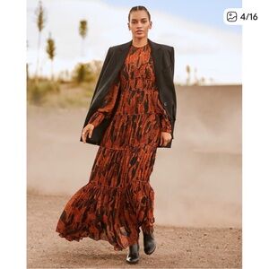 Farm Rio Tiered Giraffe Puff Sleeve Maxi Dress Small