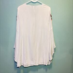 Women's Lulus White Boho Peasant Floral Embroidered Bell Sleeve Tunic Top S