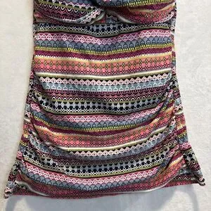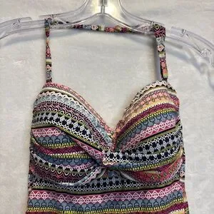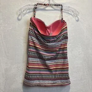 Anne Cole Twist Front Geometric Stripe Swim Bandeau Tankini Top Small Beach Pool
