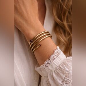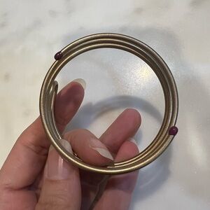 Stylish gold spiral bracelet featuring purple accents. Perfect for adding a unique touch to any outfit.