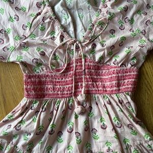 Japna pink white floral dress smocked waist cotton tiered cottagecore sz S NEW