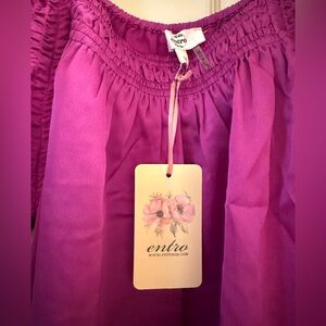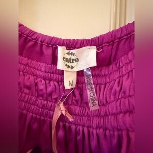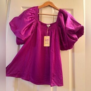 NWT Entro Silky Magenta Purple Puff Sleeve Blouse Square Neck Boutique Boho