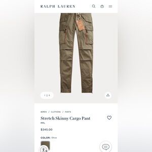 Ralph Lauren Double RL Women’s Stretch Skinny Cargo Pant Olive Green Size 28 RRL