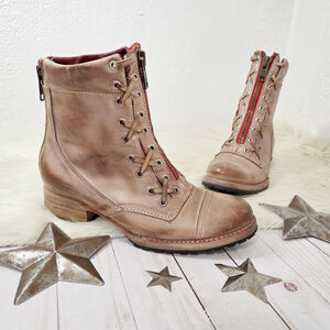 Freebird By Steven Liverpool tan Distressed Leather Combat Boots Women's Sz 9