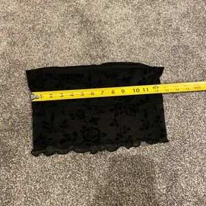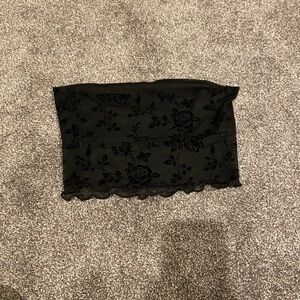 Chic black tube top with floral pattern. Perfect for a stylish look.