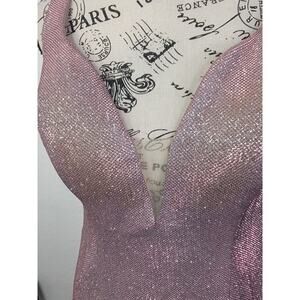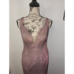 CINDERELLA DIVINE Blush Pink Metallic Long Formal Open Back Maxi Gown Dress SZ 8