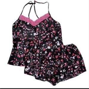 Linea Donatello Hot Pink Satin floral Pajamas 2pc XL 150