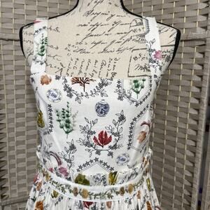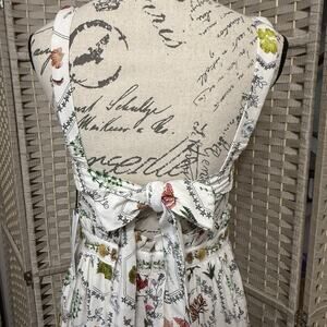 Christian Lacroix Linen Blend Maxi Dress Size S White Floral Beaded Tie Back NEW