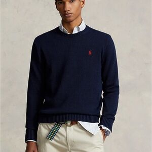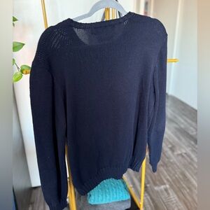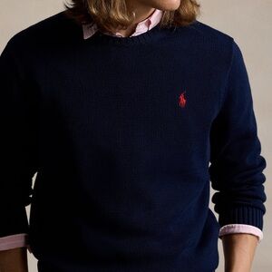 Classic crewneck design. Rich dark blue color. Iconic logo detail. Perfect for layering.