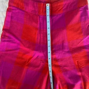Ali Golden Silk Fly Front Pants w/ Pocket - Poppy/Plaid Pink