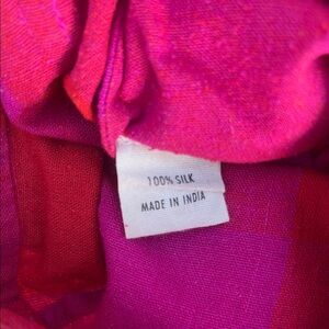 **RAW silk (see photos) high-rise pants in with fly-front zip closure and buttons at waistband. Fitted at waist with slightly relaxed hips and straight leg.