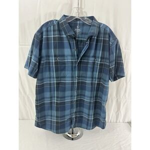Kuhl Mens XL Blue Plaid Short Sleeve Button Down Shirt Tapered Fit 7383 Hiking