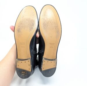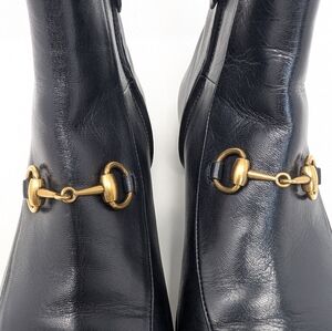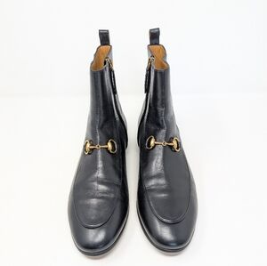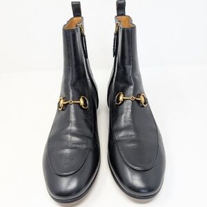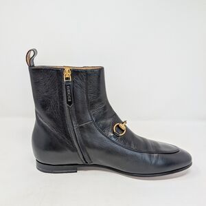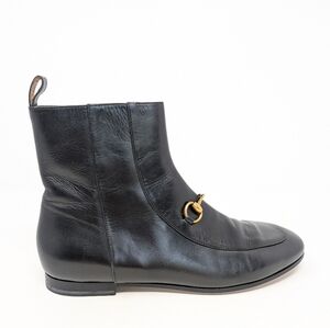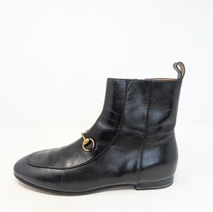 Gucci Size 37.5 Jordaan Horsebit Black Leather Ankle Boots Booties
