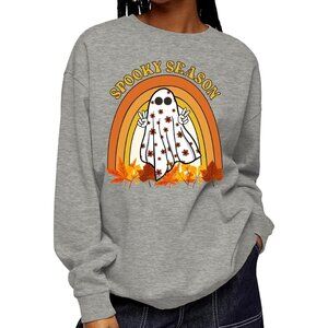 Halloween Ghost Sweater Women Cotton Blend Crewneck Long Sleeve Top