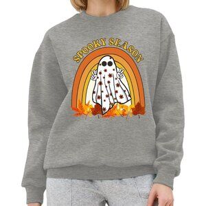 Features: Soft cotton blend crewneck sweater featuring a fun ghost graphic print. Easy pull-on style, perfect for casual cool days or festive occasions. The fun spooky season design adds a bit of humor to your wardrobe.