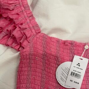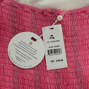 PQ Swim Carrie Sequined Smocked Mini Dress. Charming pink dress with ruffled sleeves and smocked bodice. Perfect for summer outings. Size XS/S