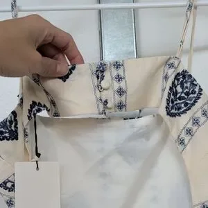 Zara womenWhite and Blue Embroidered Cutout Midi Dress Strappy M NWT 3376/929
