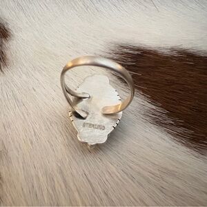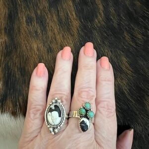 ❤️ White Buffalo Turquoise Oval Ring Navajo Style Matte Sterling ADJ Sz 5 to 7.5