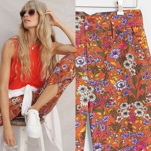 Anthropologie / Maeve Floral Wide Leg High Waist Crop Pants