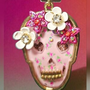 NEW BetseyNEW Betsey Johnson 3D Floral Pink Sugar Skull Drop Dangle Earrings NWT