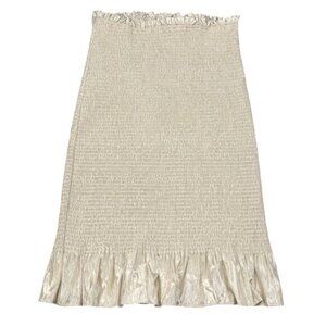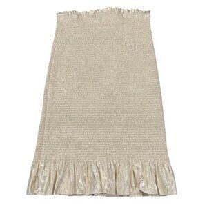 Aritzia Wilfred Ballad Smocked Metallic Mini Skirt Ruffle Hem Cocktail Bodycon